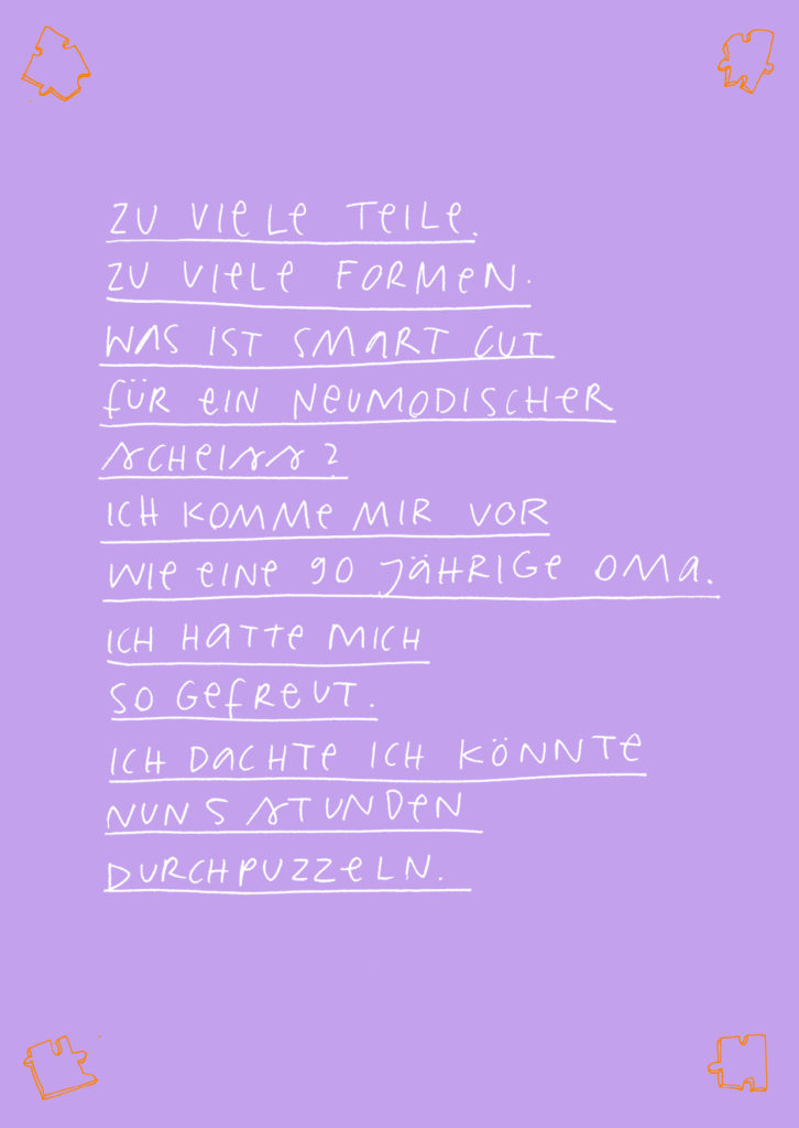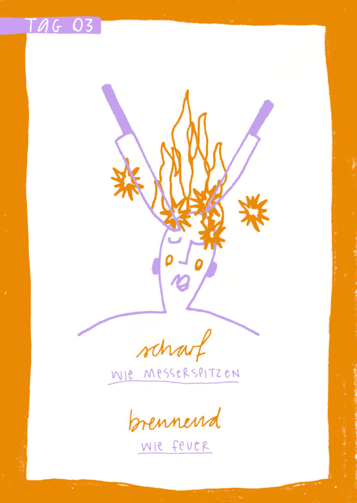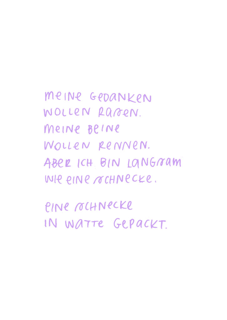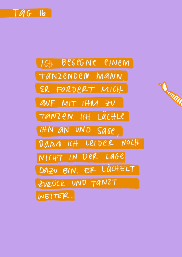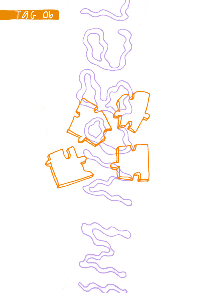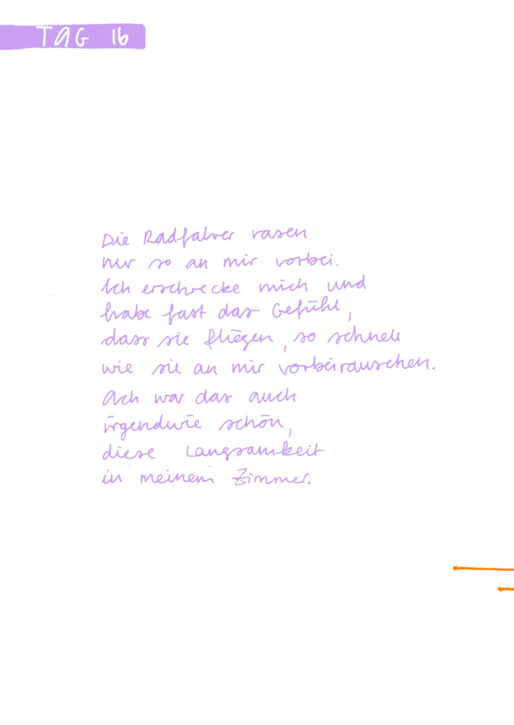 Diese Seiten sind eine Dokumentation meiner 16-tägigen Quarantäne aufgrund von Covid im Dezember 2021. Das Aufschreiben und Zeichnen meiner Gefühle und Gedanken half mir mit der Situation umzugehen. Es war eine feste Aufgabe, der ich mich jeden Tag bewusst widmete.